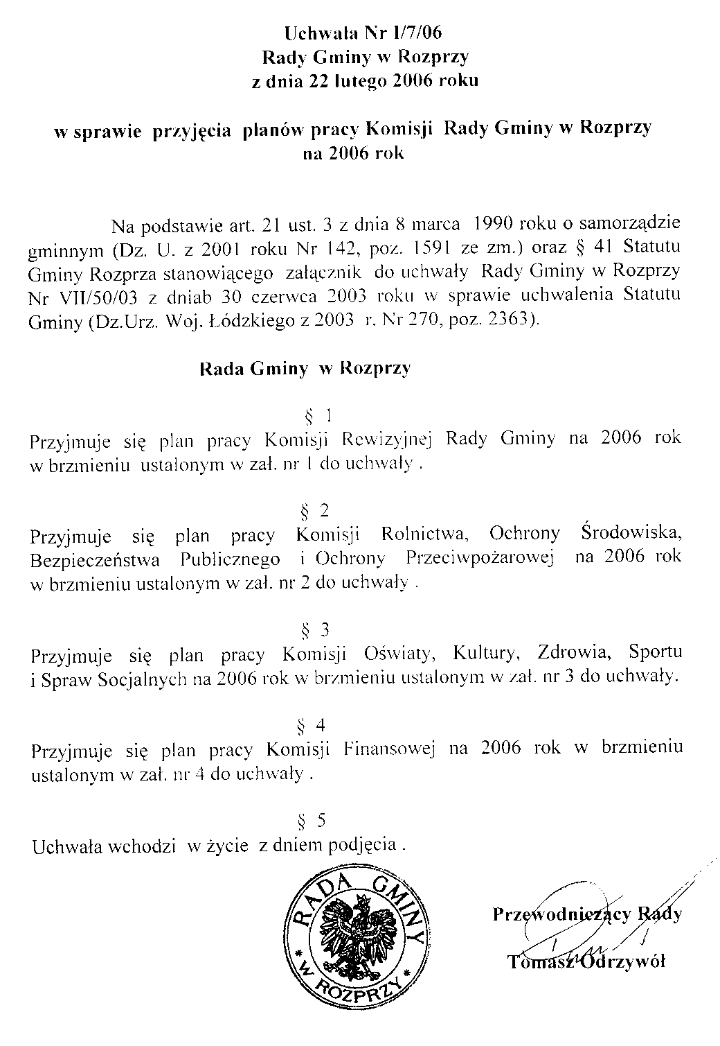 Plan pracy na 2006r Komisji Rolnictwa, Ochrony Środowiska, Bezpieczeństwa Publicznego o Ochrony Przeciwpożarowej RG w Rozprzy 2.GIF (36kB) gif