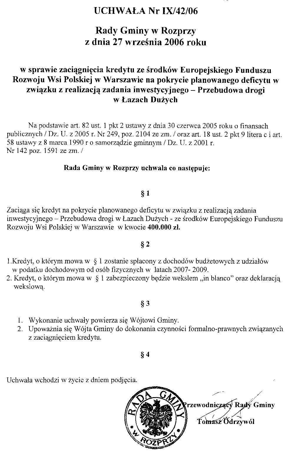 Uchwała nr IX/42/06