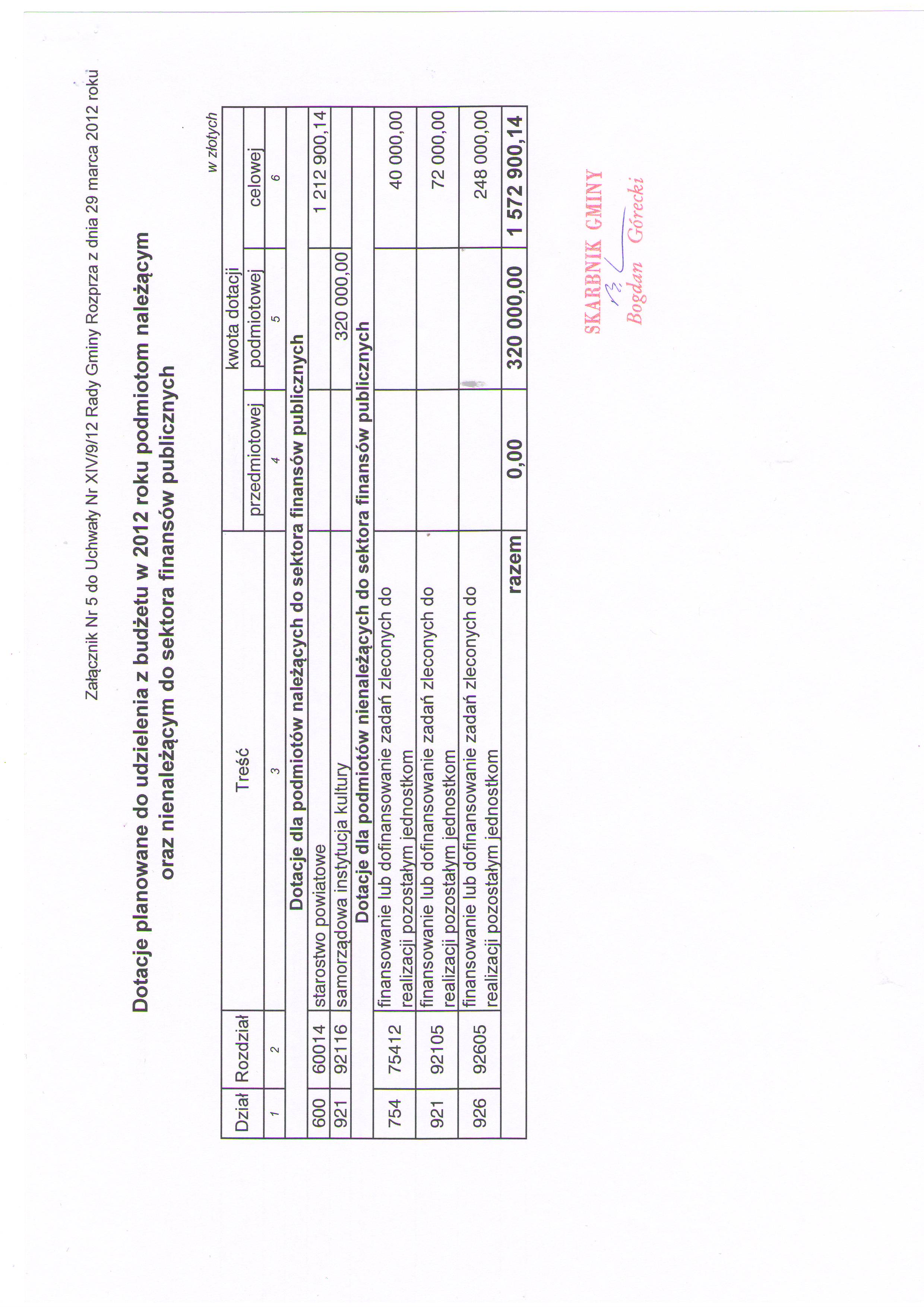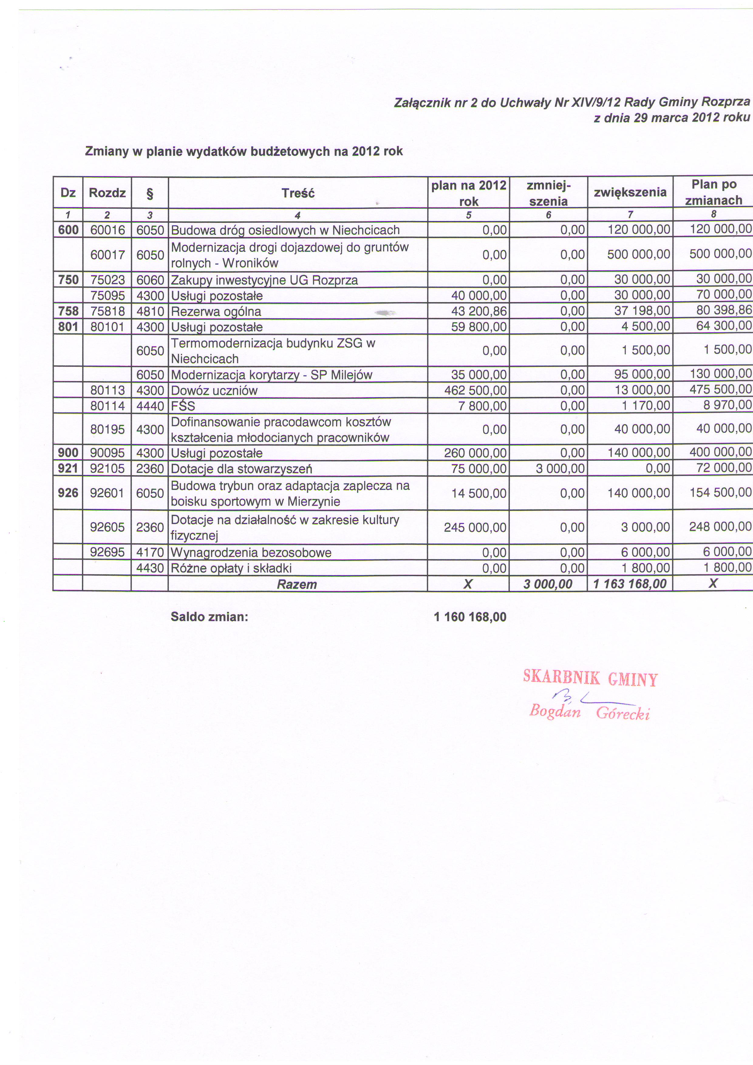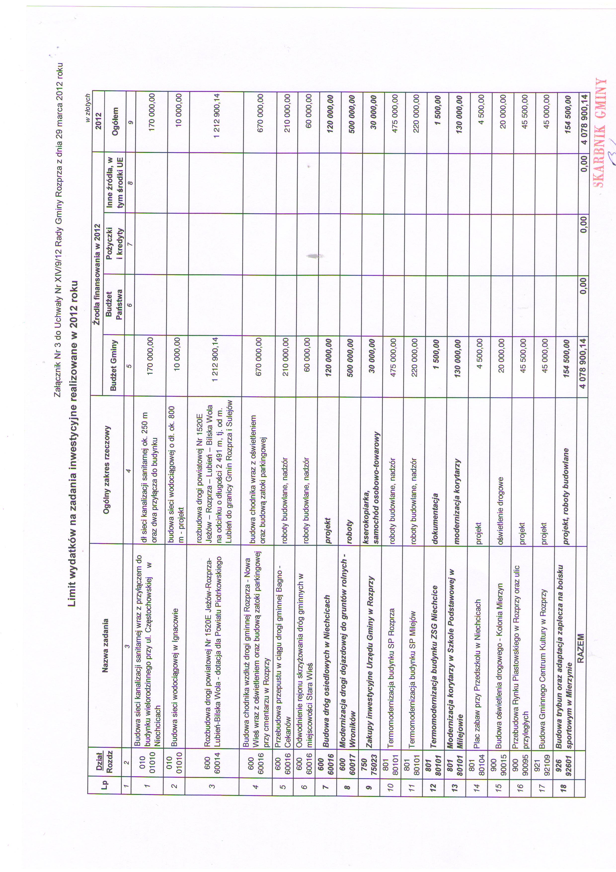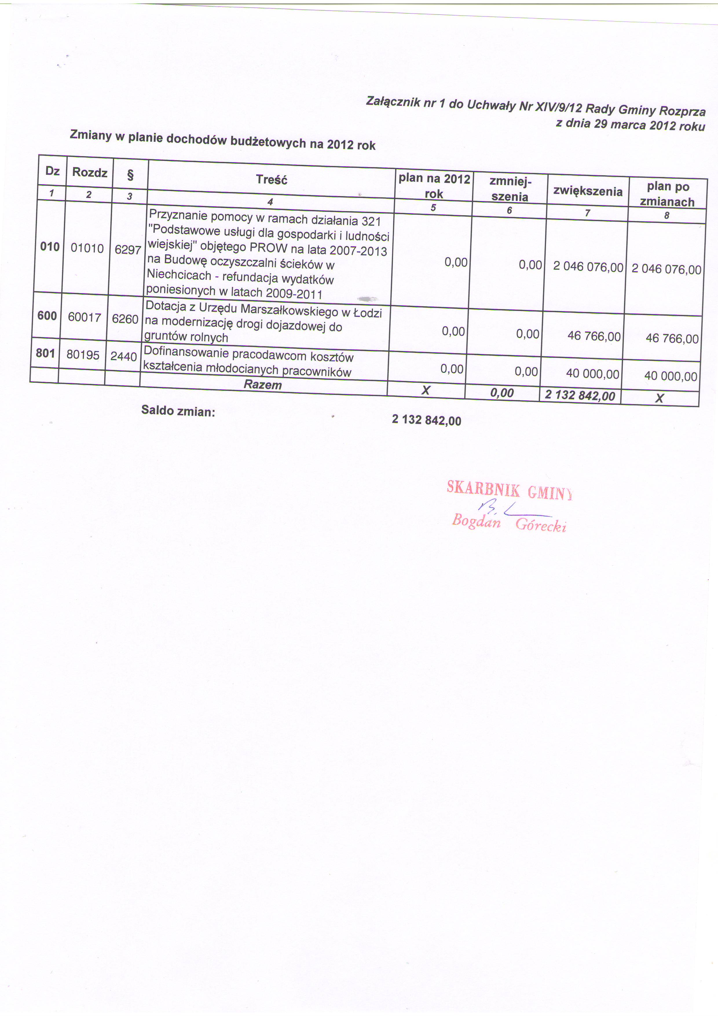 Uchwała nr XIV/9/12 Rady Gminy w Rozprzy z dnia 29 marca 2012 zmian budżetu i w budżecie Gminy Rozprza na 2012 rok