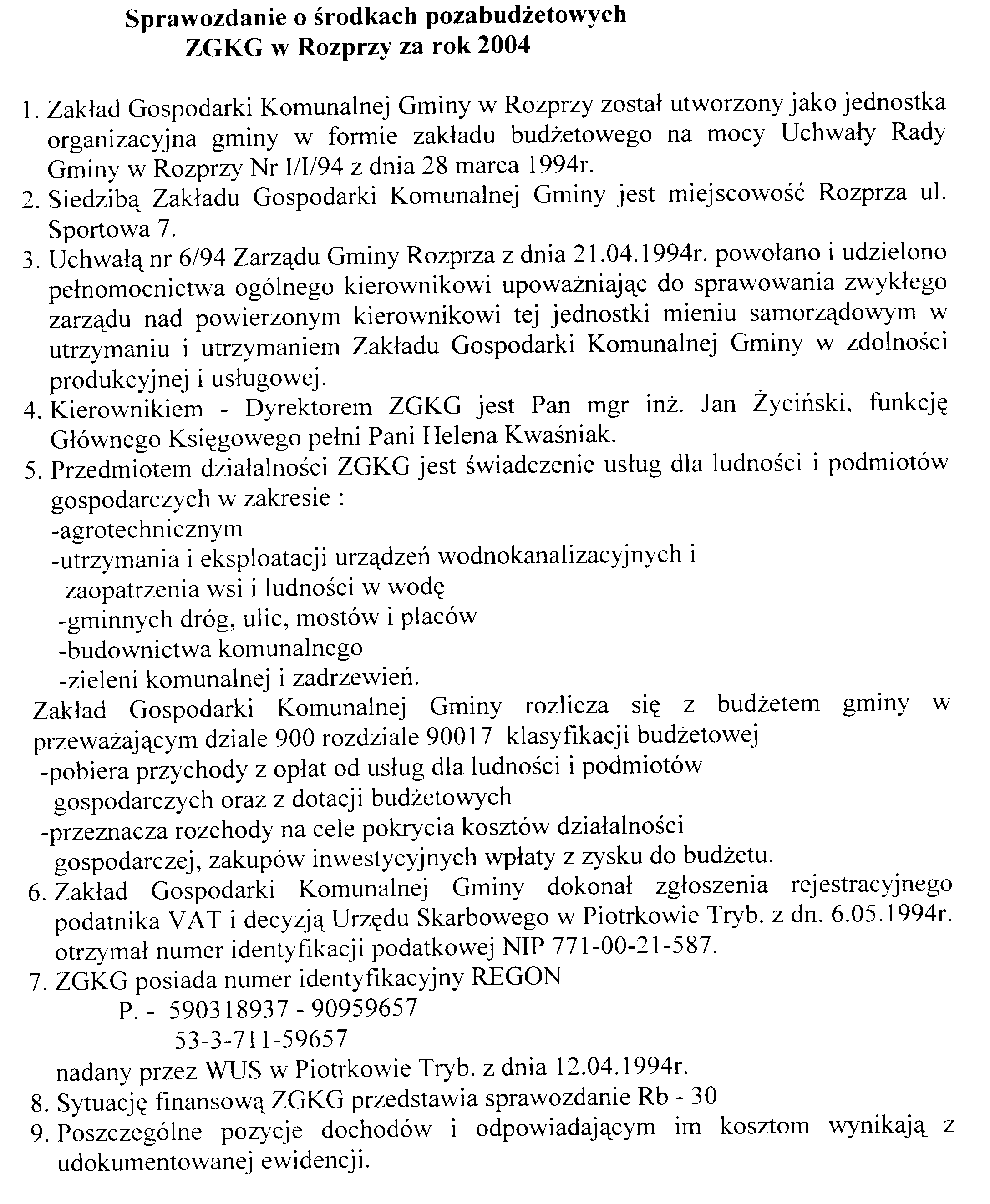 Sprawozdanie o środkach pozabudżetowych ZGKG w Rozprzy na rok 2004 STR_1 1.GIF (133kB) gif