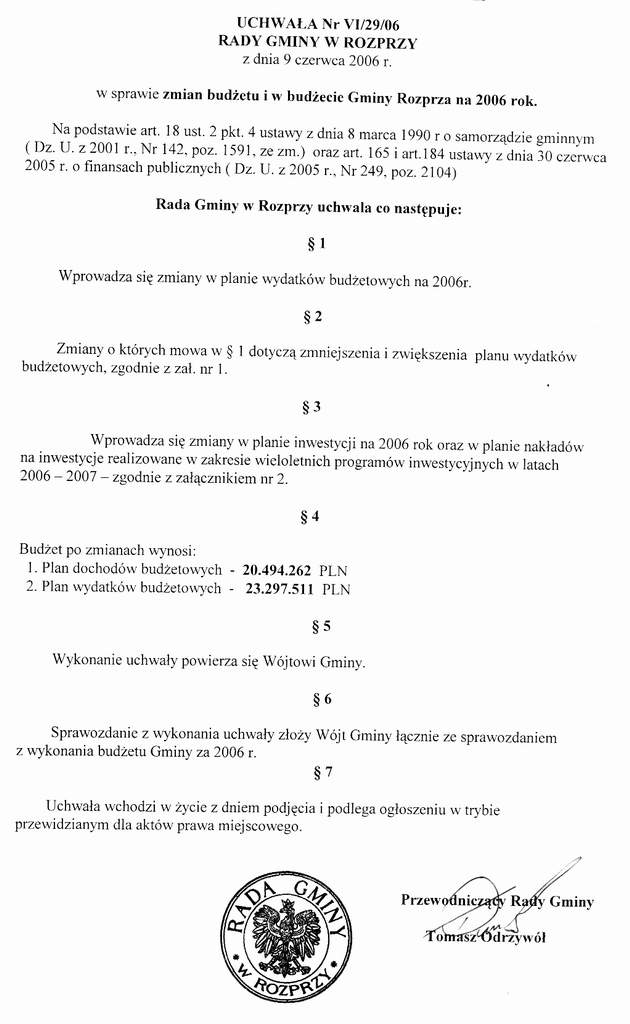 Uchwała nr VI/29/06
